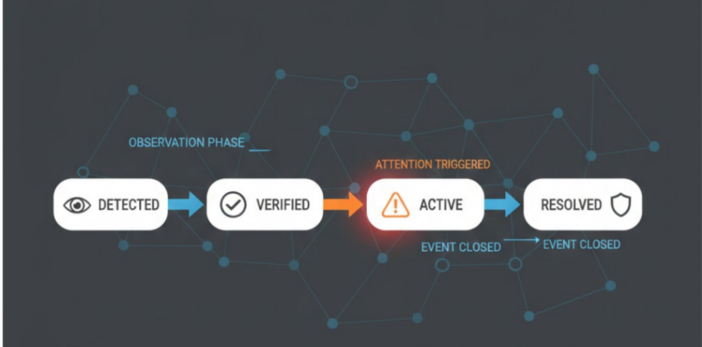 A system that waits, verifies, and suppresses unnecessary repetition produces fewer alerts — and more trust.