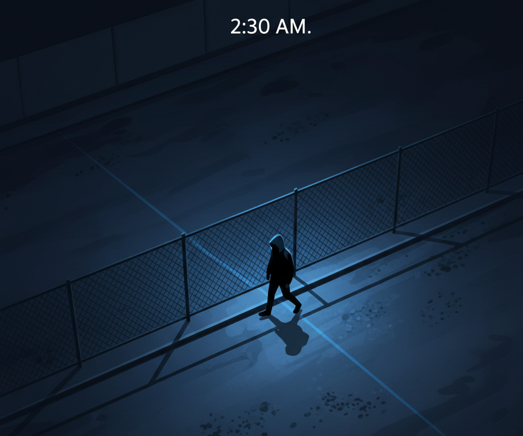 A person entered the area, walked slowly along the boundary, paused near a restricted section, and left.