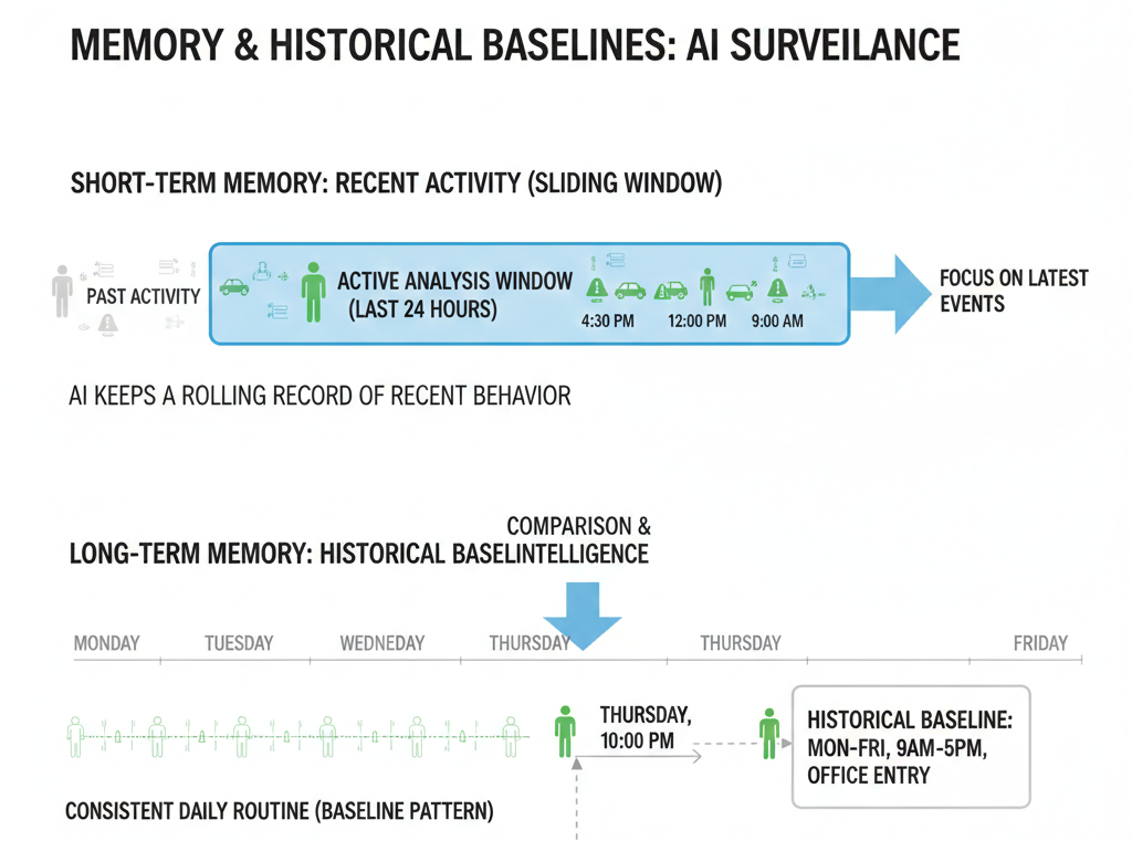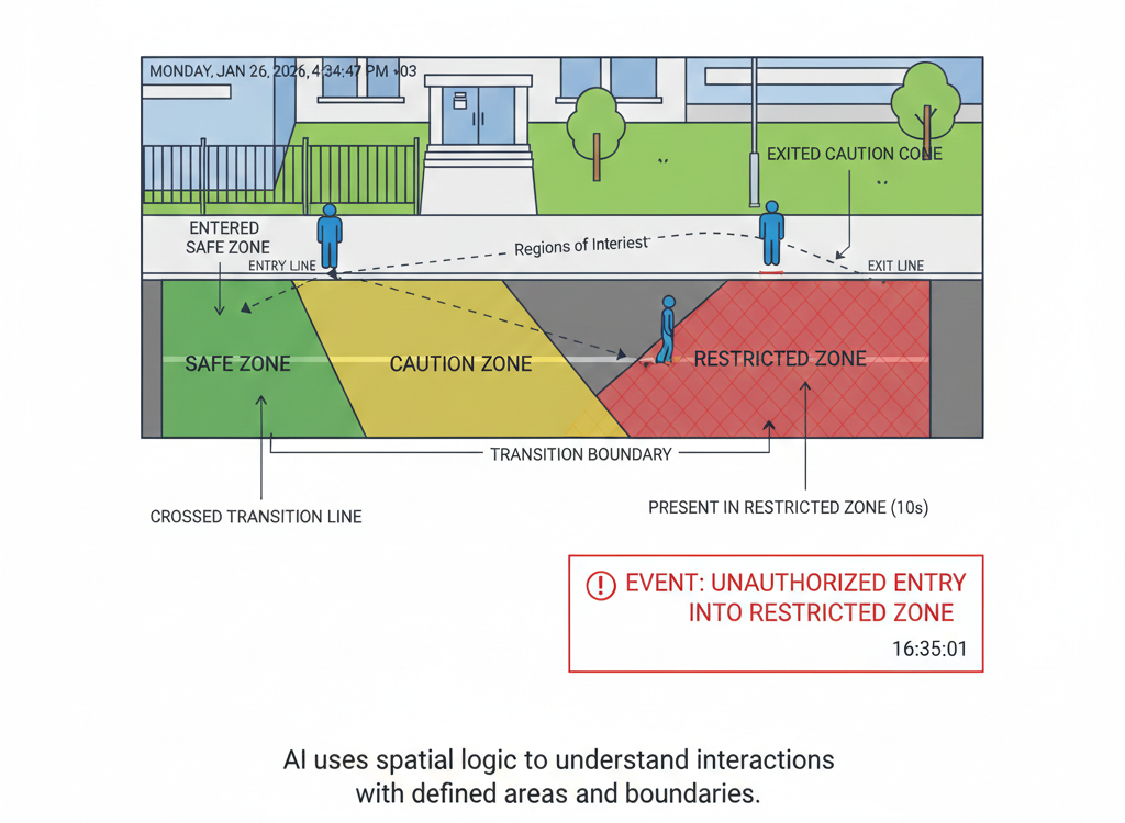 Smart surveillance focuses on behavior rather than isolated detections, such as: