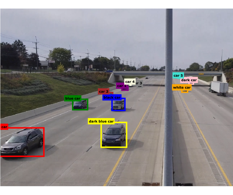 Pixels ↓ Objects ↓ Tracked identities ↓ Trajectories ↓ Events